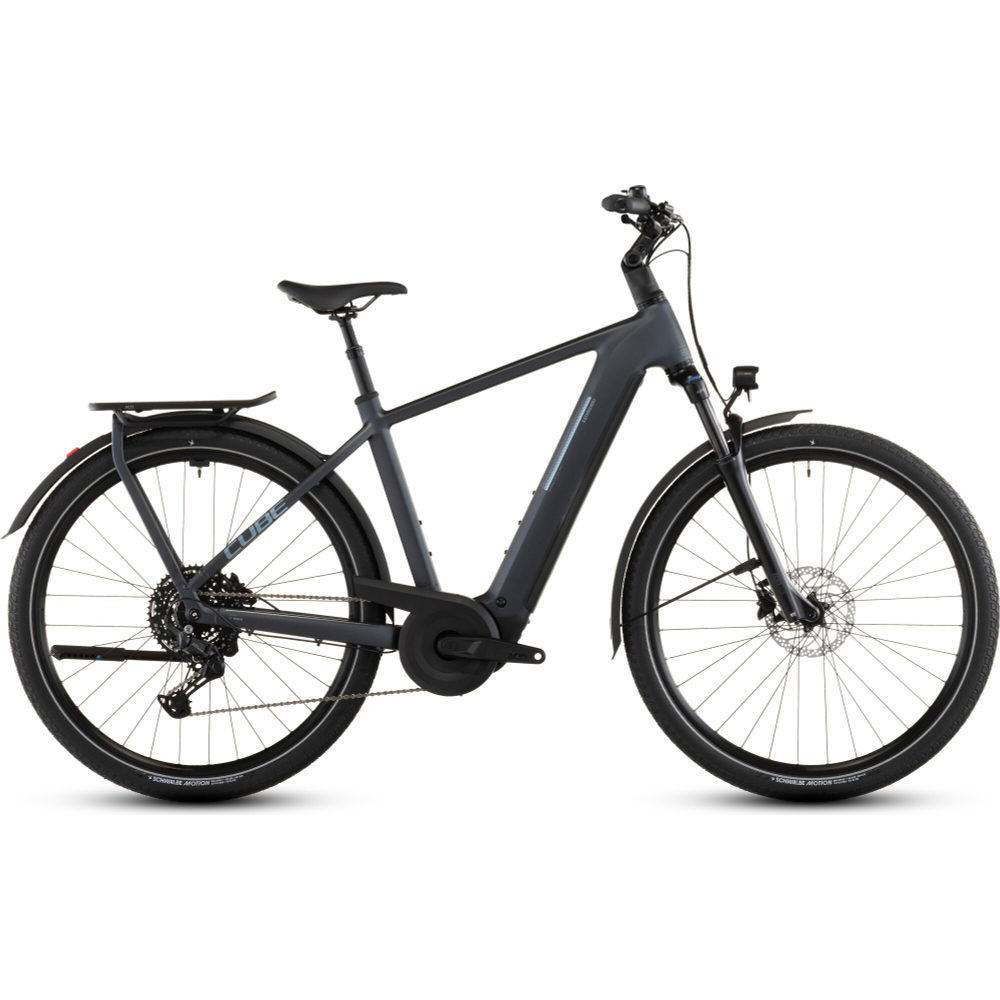 Wer mit dem CUBE Kathmandu Hybrid ONE unterwegs ist, kann seiner Abenteuerlust freien Lauf lassen. Denn dieses Bike ist mit einem 800 Wh PowerTube Akku ausgerüstet, der den leistungsstarken Bosch CX Antrieb mit bis zu 85 Nm Drehmoment zuverlässig vorwärtstreibt. Außerdem mit einer einfach zu bedienenden, breit gefächerten Cues 10-fach Schaltung von Shimano, welche diese Power wohldosiert auf die Straße bringt. So wird jede Route zum Spaziergang! In Sachen Komfort leisten die Suntour Luftfedergabel, eine gefederte Sattelstütze und der verstellbare Vorbau besonders an langen Tagen im Sattel wertvolle Dienste. Sichere, zuverlässige Bremskraft bei jedem Wetter ist das Spezialgebiet der kraftvoll zupackenden hydraulischen Shimano Scheibenbremsen. Ebenso mit an Bord ist ein Zubehör-Komplettset, bestehend aus einer Lichtanlage, Schutzblechen und natürlich unserem integrierten Gepäckträger IC 3.0. Soll heißen: Dieses E-Bike ist allzeit bereit für sämtliche Entdeckertouren!