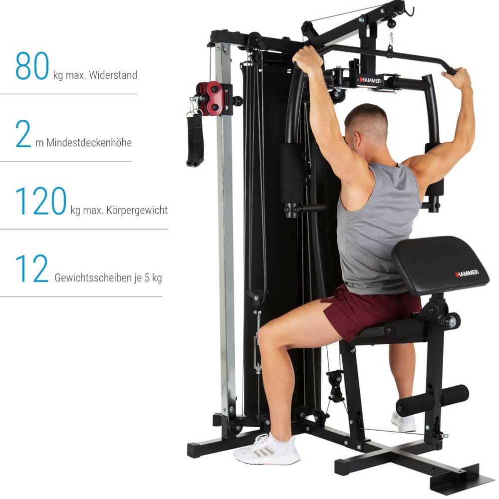 Viele Übungsmöglichkeiten kompakt in einem Home Gym. Gezieltes Training von mehreren Muskelgruppen durch die Ausführung von Grundübungen. Die perfekte Trainingsstation für Deine Bodytransformation. Baue Deine Muskeln in den eigenen vier Wänden auf.