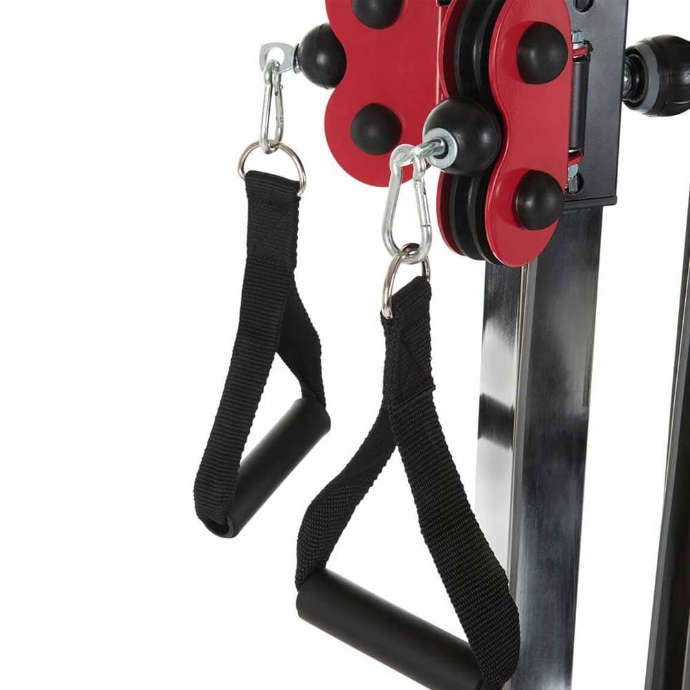 Die Qualitätskugellager in den Kunststoff Umlenk-Rollen erzeugen während Deines Seilzugtraining einen sehr ruhigen und runden Bewegungsablauf. Die kunststoffummantelte Stahlseile laufen gleichmäßig und ermöglichen Dir im freien Training eine optimale Bewegungsausführung