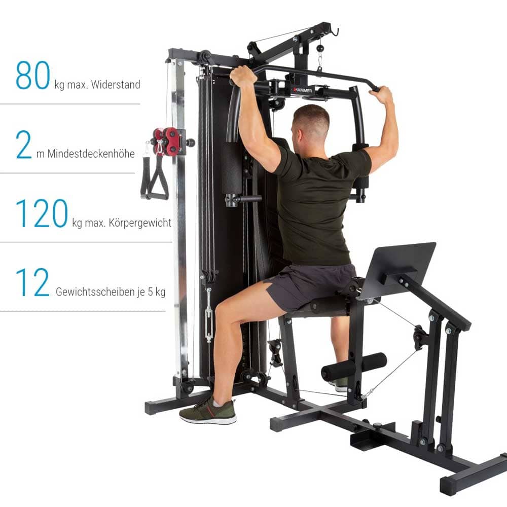 Mit den verschiedenen Druck- und Zugmöglichkeiten der Ferrum TX3 bekommst Du eine Vielzahl an Übungsmöglichkeiten. Das Multi Gym eignet sich für Grundübungen und Isolationsübungen. Die Trainingsintensität kannst Du mit dem schnell verstellbaren Gewichtsblock steigern und Supersätze in Dein Krafttraining integrieren. Auch das bereits im Lieferumfang enthaltene Zubehör, wie zum Beispiel die Curl- und Latzugstange kann für verschiedene Kraftübungen verwendet werden. Die Ferrum TX3 erlaubt Dir ein gezieltes Training Deiner Muskelgruppen.