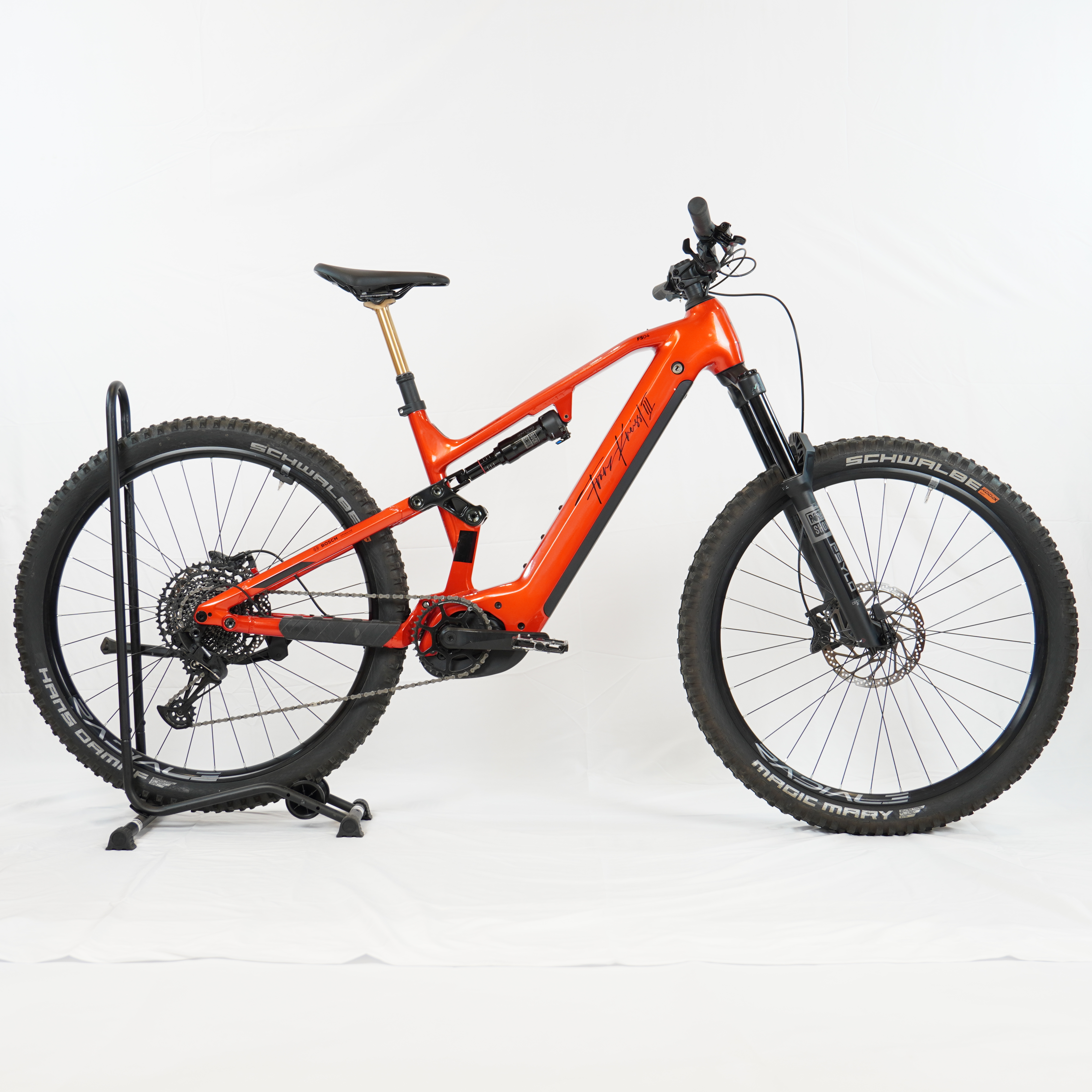 Ausgestattet mit einer SRAM Eagle 12-fach Schaltgruppe, hochwertigen Shimano 4 Kolbenbremsen und einer absenkbaren Sattelstütze, erfüllt das Kneissl FS04 alle Anforderungen an ein hochwertiges E-Mountainbike.