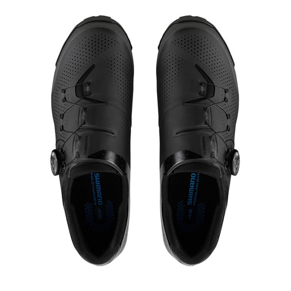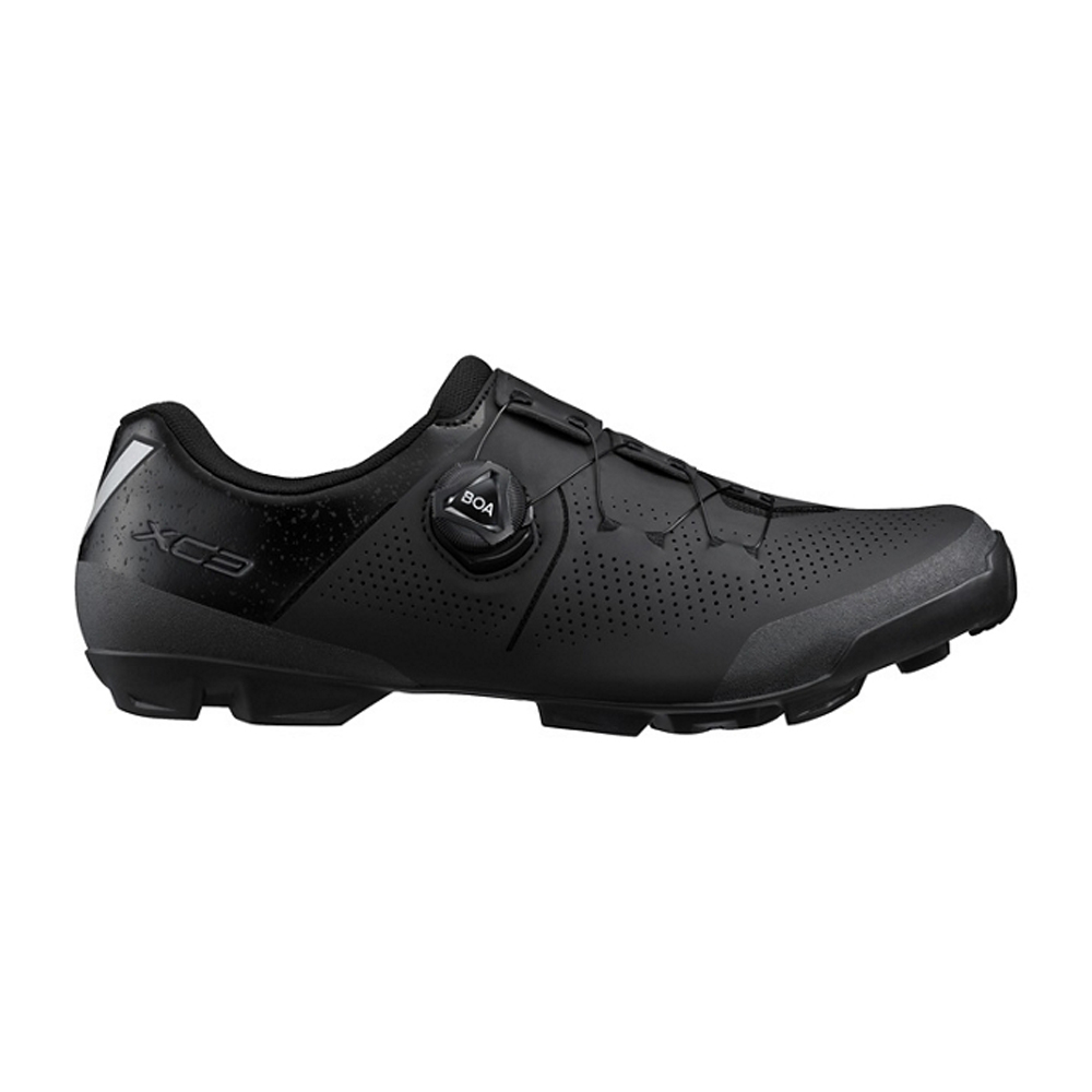 Der Shimano XC302 in Schwarz ist ein leistungsstarker MTB-Radschuh, der speziell für anspruchsvolle Cross-Country-Fahrer entwickelt wurde. Mit seinem modernen, schlichten Design in tiefem Schwarz kombiniert er hervorragenden Komfort, optimale Kraftübertragung und zuverlässige Strapazierfähigkeit. Der XC302 verfügt über eine leichte, glasfaserverstärkte Sohle, die für eine effiziente Pedalwirkung sorgt, während das innovative BOA® L6 Drehverschluss-System präzise Anpassung und optimalen Sitz ermöglicht. Durch seine atmungsaktive Konstruktion bleibt der Fuß selbst bei intensiven Fahrten angenehm belüftet. Ideal für ambitionierte Fahrer, die Performance und Komfort auf Trails und Rennstrecken gleichermaßen schätzen.