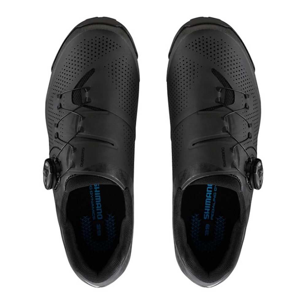 Der Shimano XC302 Women in Schwarz ist ein speziell für ambitionierte Mountainbikerinnen entwickelter Cross-Country-Radschuh, der mit optimaler Passform und herausragender Performance überzeugt. Das elegante, sportliche Design in schlichtem Schwarz ergänzt jedes Outfit und überzeugt durch seine vielseitige Kombinierbarkeit. Dank der frauenspezifischen Passform und dem leichten, glasfaserverstärkten Sohlenaufbau bietet der XC302 Women eine exzellente Kraftübertragung und effizientes Pedalieren. Das präzise BOA® L6 Drehverschlusssystem ermöglicht eine schnelle, einfache und individuelle Anpassung, während atmungsaktive Materialien für eine angenehme Belüftung sorgen. Ein zuverlässiger Begleiter für leistungsorientierte Fahrerinnen, die Komfort, Stil und Funktionalität auf jedem Trail schätzen.
