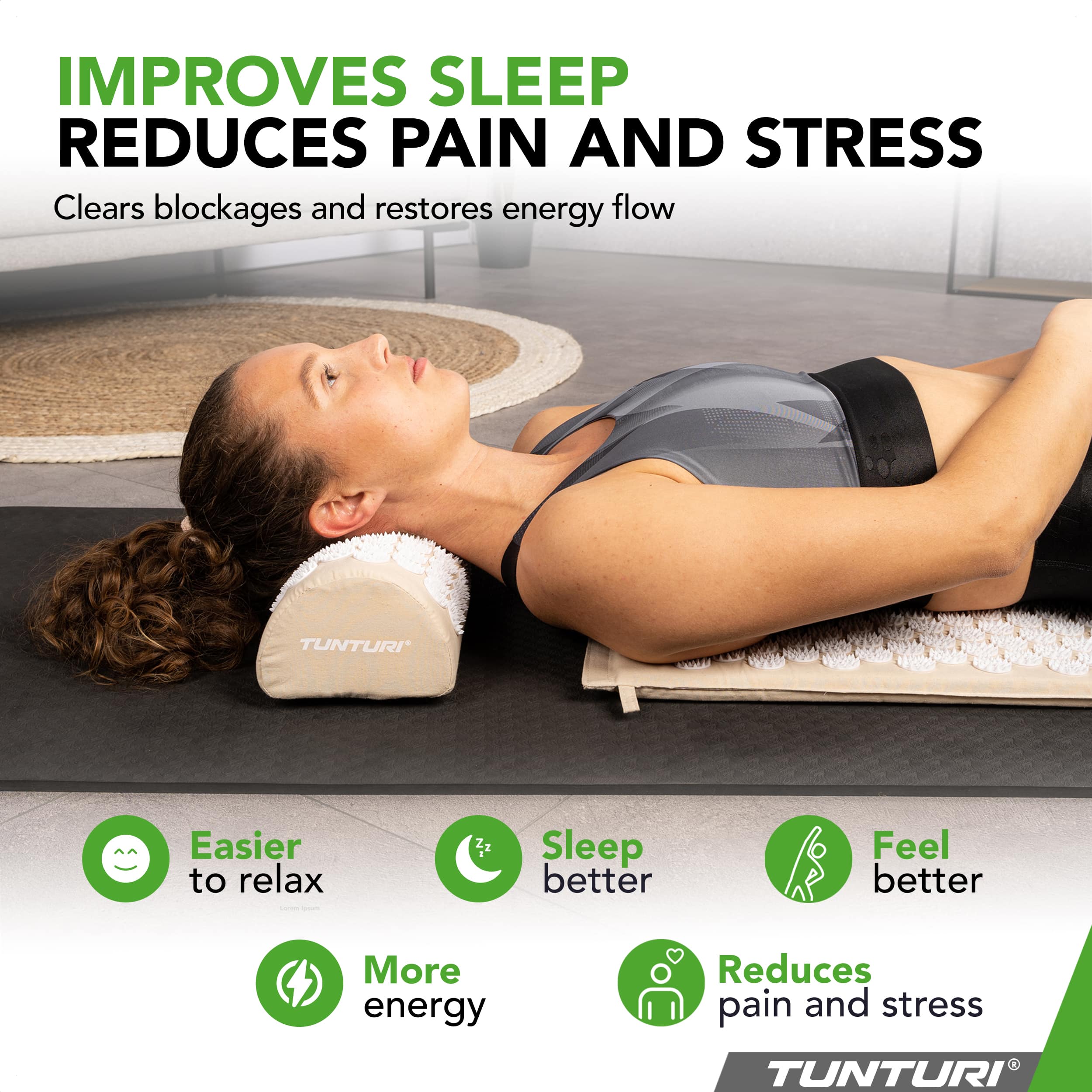 Möchten Sie sich leichter entspannen, mehr Energie haben, besser schlafen, Muskelschmerzen reduzieren und sich in Ihrer Haut wohler fühlen? Die Tunturi Akupressurmatte mit Kissen bietet eine Lösung! Diese kompakte Nagelmatte mit 8.000 Druckpunkten bringt Ihre Energie in nur 10 Minuten pro Tag zum Fließen!