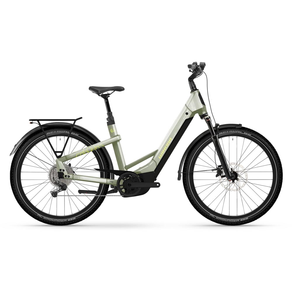 Das Winora Yakun X10 bietet alles, was du für E-Bike Ausflüge brauchst – sowohl innerhalb als auch außerhalb der Stadtgrenzen. Die neueste Auflage dieses Yakun Klassikers überzeugt mit einem neuen Rahmendesign, das noch mehr Komfort und Vielseitigkeit verspricht als die Vorgänger. Dazu kommt der ebenfalls neue Bosch Performance CX Motor, der zusammen mit dem 800 Wh Akku auch ausdauernde Abenteuer spielerisch meistert. Die Luftfedergabel schluckt Stöße im Gelände gekonnt weg. Und die großvolumigen Reifen des wahlweise mit High- oder Low-Rahmen erhältlichen Trekking E-Bikes verwandeln auch grobes Kopfsteinpflaster in sanfte Asphaltpisten. Praktisch ist das Modular Rail System, mit dem du Zubehör wie zusätzliche Flaschenhalter befestigen kannst. Ein Klickfix-Halter am Steuerrohr ermöglicht zudem die Montage eines Frontgepäckträgers. So wird deine nächste Tour zu einem unvergesslichen Erlebnis – ganz ohne Anstrengung.