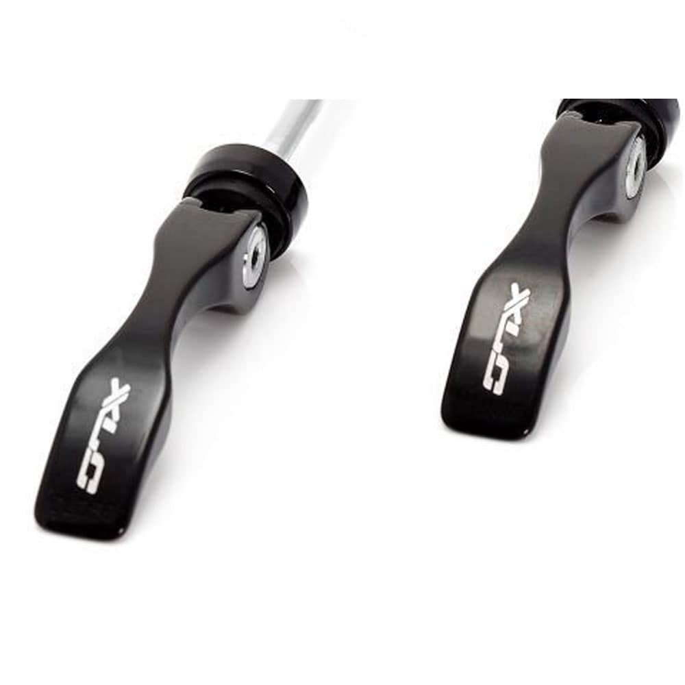 Dieses Schnellspannset ist aus Aluminium und Stahl gefertigt, und sorgt für eine rasche Demontage der Laufräder ohne Werkzeug.