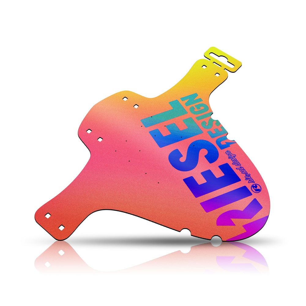 - Areas of application - the riesel design "schlammPE" Mudguard was developed for splash protection in the front area. With a multiplicity of bicycle models the possibility exists to use the "schlammPE" also as a damper splash guard.