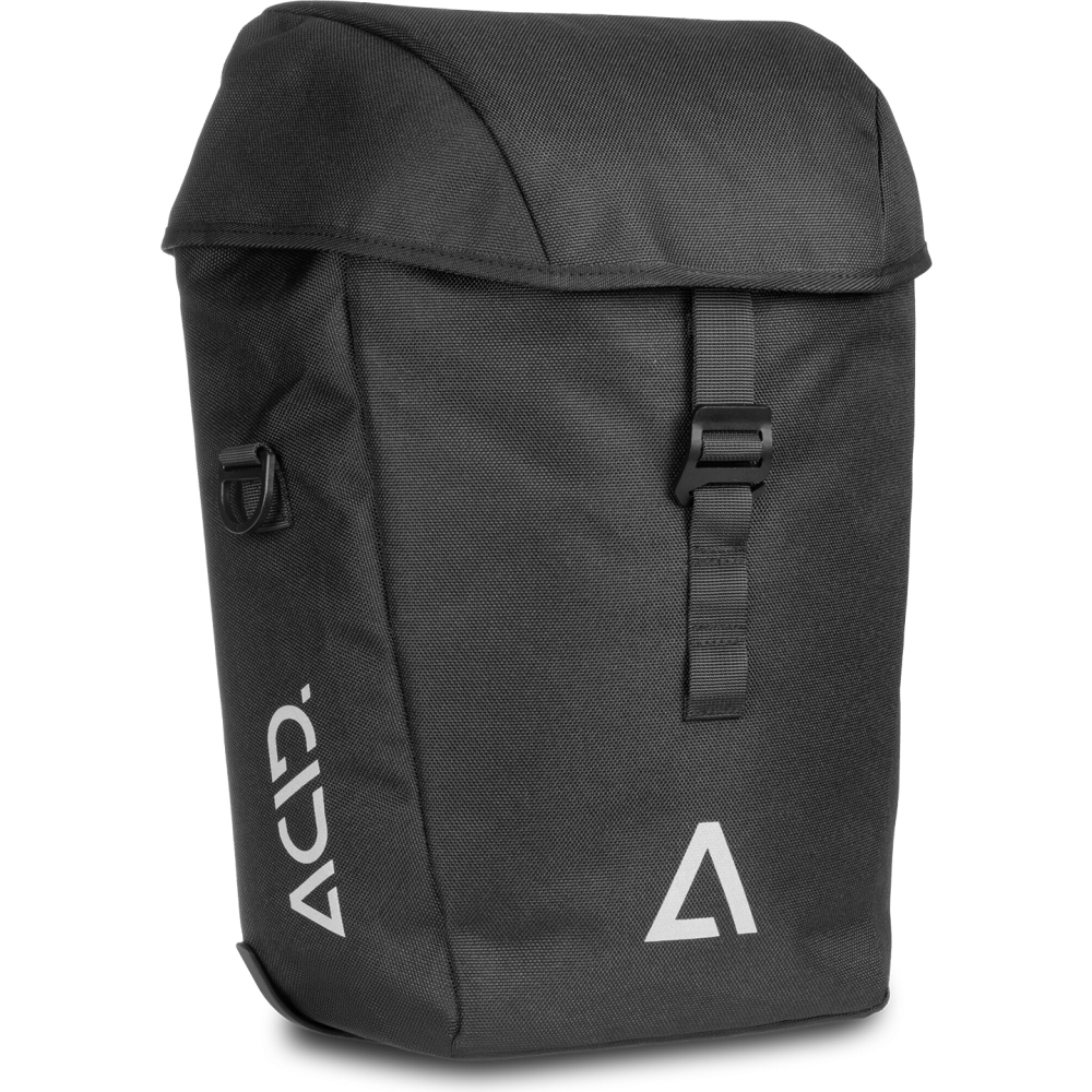 The abrasion-resistant ACID CITY 15 SMLink 2.0 side pannier is ideal for everyday cyclists. The ACID SMLink 2.0 attachment system ensures quick and secure mounting on various luggage carriers. It has a padded inner compartment and is also ready for use in bad weather thanks to the practical rain cover. With the shoulder strap, the bag can also be carried comfortably on foot. The reflectors ensure good visibility.