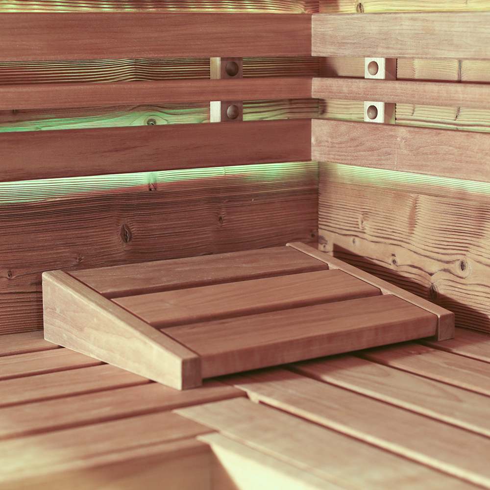 Sauna like in a 5 star luxury hotel. With the new ZANIER Premium Sauna you can bring your wellness oasis into your home. Production is made to order with a delivery time of about 5-6 weeks, which means that custom-made production is also possible. This sauna can also be equipped as an infrared cabin with red light radiators for the same price, or as a combination of sauna and infrared cabin for an extra charge of EUR 800.00.