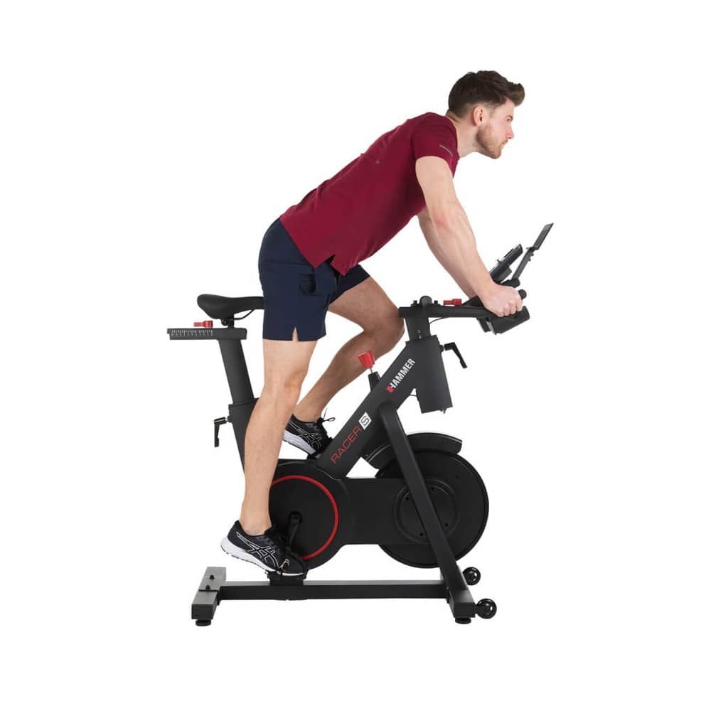 Take off with the HAMMER Speedbike RACER S and experience the perfectly coordinated high-tech features of the high-quality indoor bike at home. Pedal at full speed and adjust the modern magnetic brake system to suit you perfectly. The electronic resistance adjustment is the performance regulator for your speed sessions. Strengthen your calf and thigh muscles with the Speedbike RACER S and burn a lot of calories. Let the Speedbike RACER S inspire you and start the next cycling season at home, regardless of the weather and with momentum.