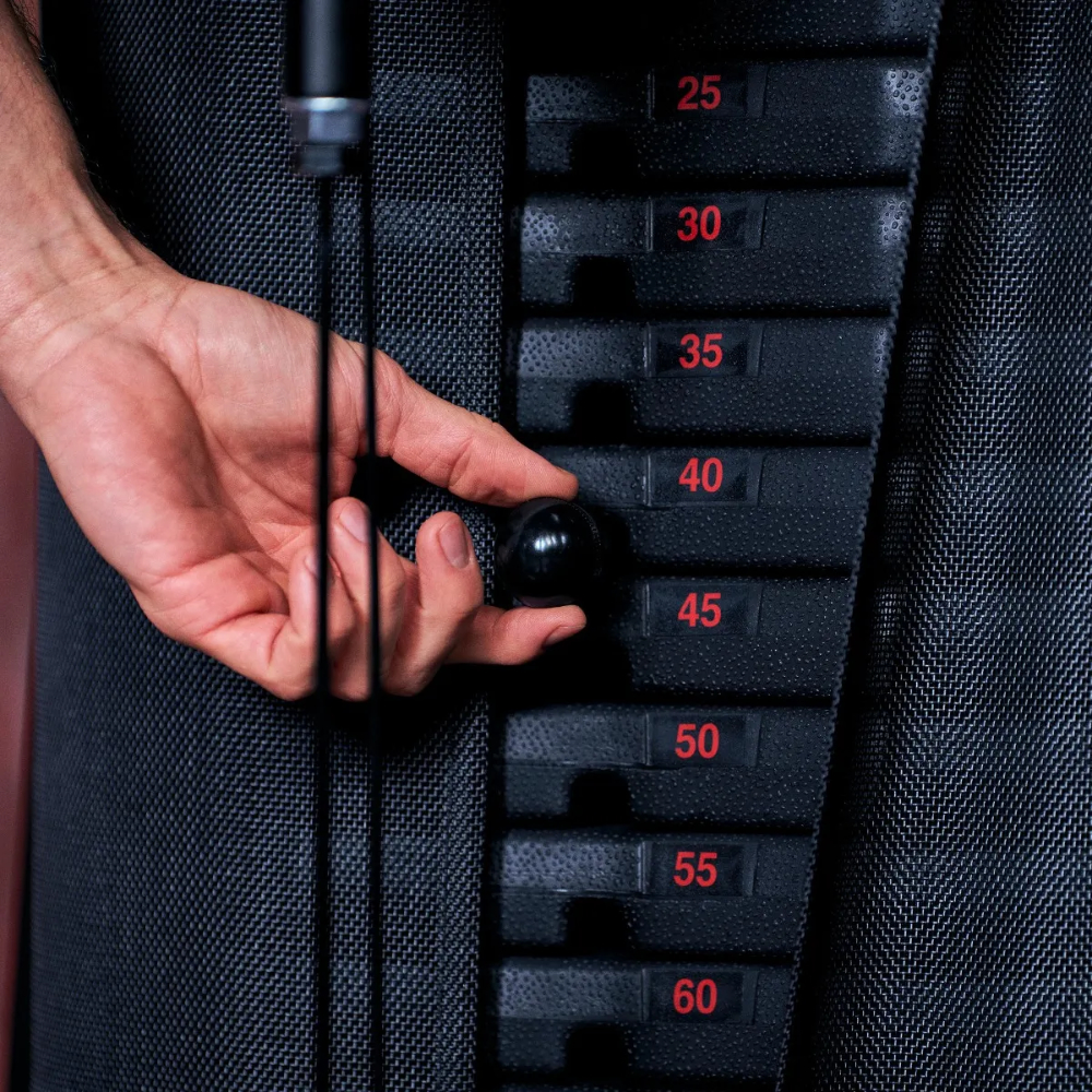 - Resistance system: 1 x 100 kg weight block