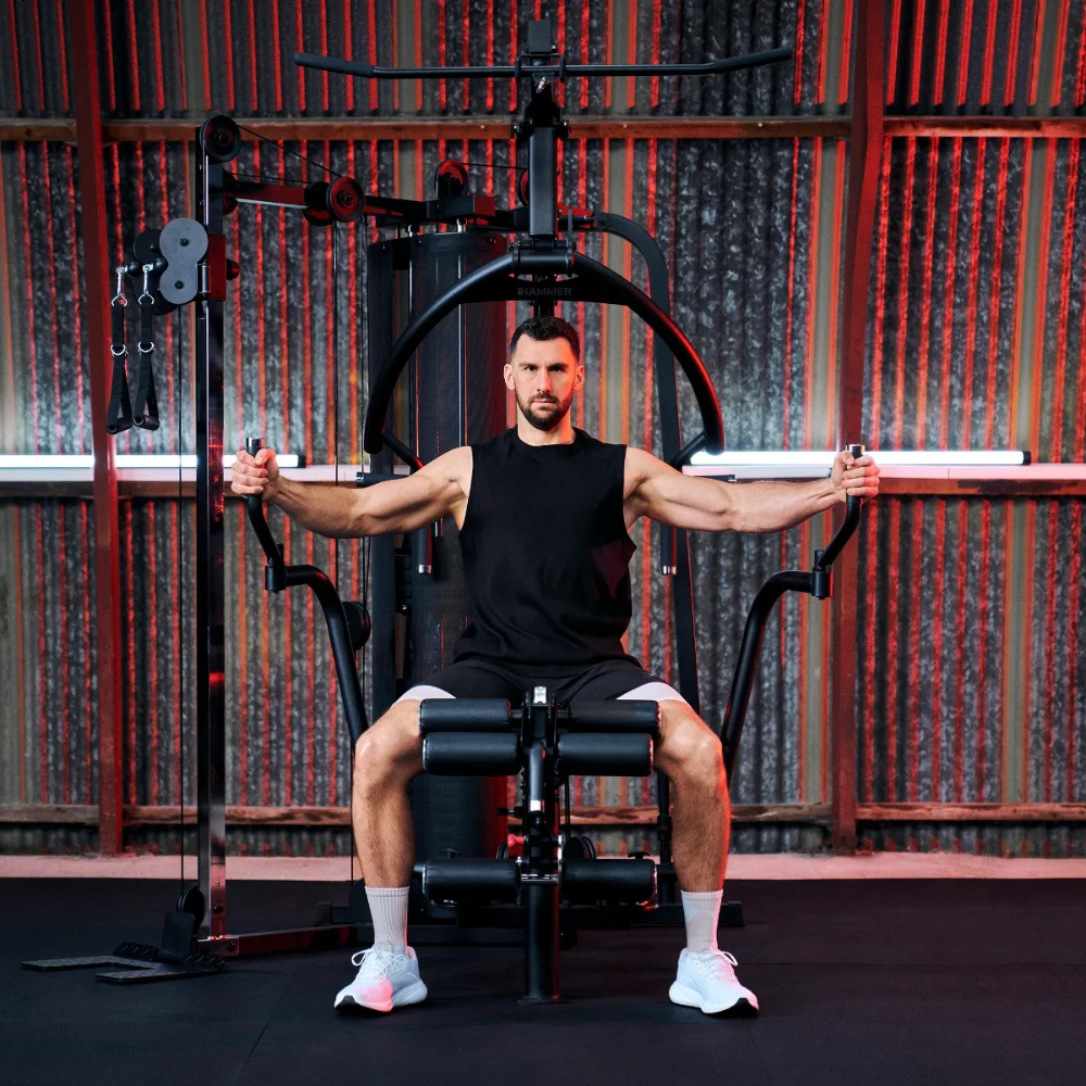 The new HAMMER Autark 6000 brings a real studio feeling to the home gym - with a versatile range of functions, a powerful 100 kg weight block and a modern full-black design. Developed for anyone looking for a powerful, space-saving strength system, it combines intelligent mechanics with maximum training comfort.