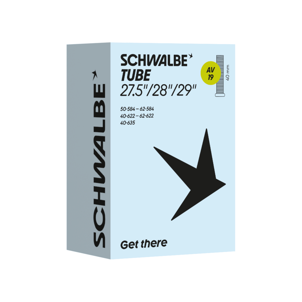 Schwalbe standard bicycle inner tube no. 19 for bicycle tyres in size 27.5"/28"/29" inch (ETRTO 50→62-584, 40→62-622, 40-635). Holds air for longer than average. Thanks to the best material quality and uniform wall thickness. Maximum reliability that has proven itself millions of times over.